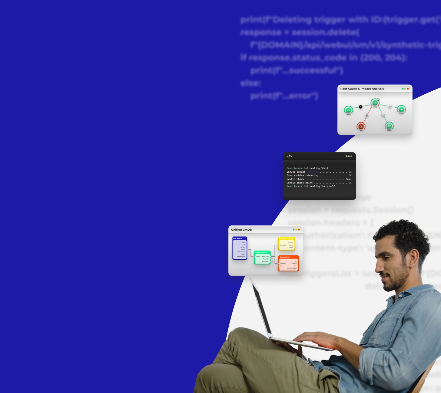 • Monitoring data: AWS, Azure, Zabbix, Splunk, Nagios, Prometheus, Microsoft System Center, other 20+ customized connections.